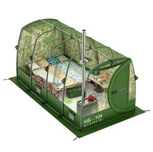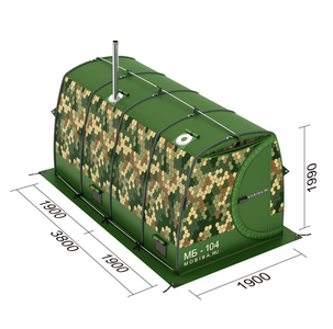 Палатка Мобиба «МБ-104 М3» при своих размерах в развернутом состоянии 3800х1990х1990 мм. и жилой полезной площадью 7,6 кв.м. (13,7 куб.м.)