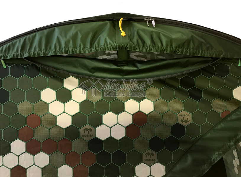 Дверь имеет большое проходное сечение, через которое без труда проходит полностью экипированный солдат, охотник или рыбак. При необходимости, позволяет быстро покинуть палатку и предотвращает открывание двери от ветра.